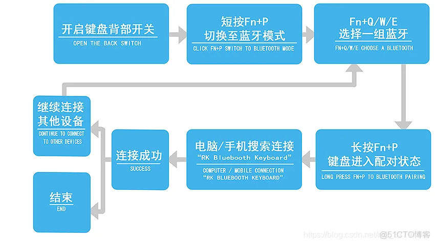 - 打开设备蓝牙并搜索连接名为”RK Bluebooth Keyboard”